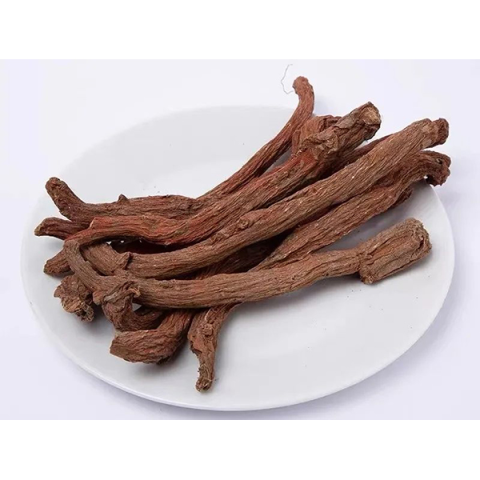 1、本品根茎短粗,顶端有时残留茎基。根数条,长圆柱形,略弯曲,有的分枝并具须状细根,长10~20cm,直径0.3~lcm。表面棕红色或暗棕红色,粗糙,具纵皱纹。老根外皮疏松,多显紫棕色,常呈鳞片状剥落。质硬而脆,断面疏松,有裂隙或略平整而致密,皮部棕红色,木部灰黄色或紫褐色,导管束黄白色,呈放射状排列。气微,味微苦涩。