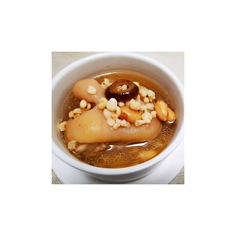 La sopa de cerdo con castaña de agua y semillas de coix es una sopa tradicional china cocinada a fuego lento, elaborada con carne de cerdo, castañas de agua y semillas de coix (lágrimas de Job) como ingredientes principales, complementada con dátiles rojos, sal y glutamato monosódico.